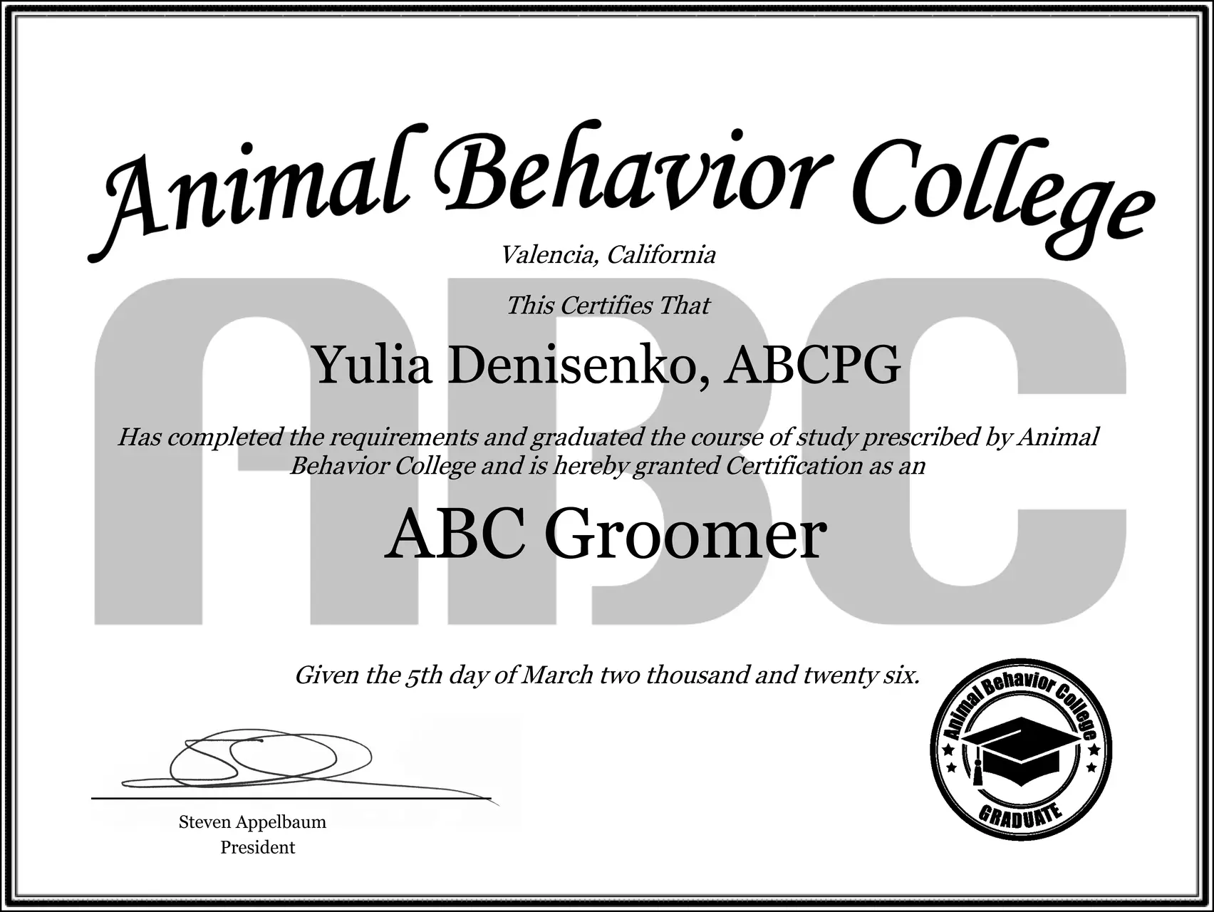 "By far the very best groomer that I've ever taken my 13 and 7 year old dogs to! I have tried many groomers in the lower mainland and Victoria over 30 years of raising many types of dogs. Yulia is by far the very best groomer! Incredible service, so sweet, the best grooming skills and great rapport with the dogs! Highly recommend Yulia!!"
